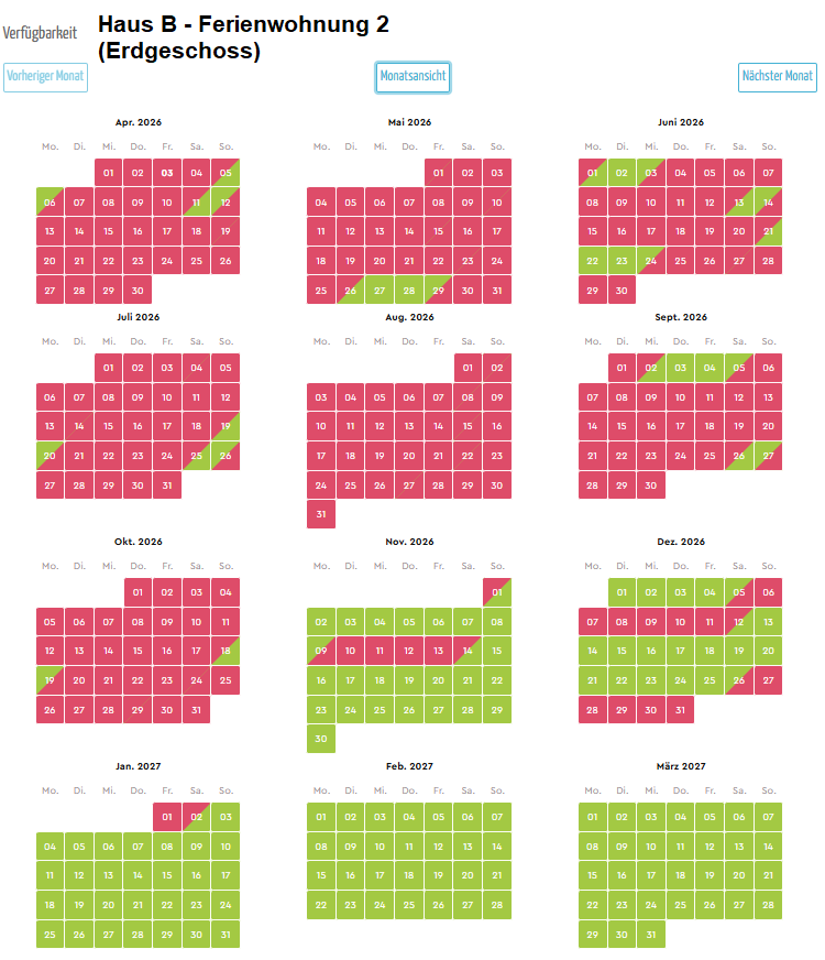 Die Reservierung der Ferienwohnung ist mit der Buchungsbestätigung verbindlich.